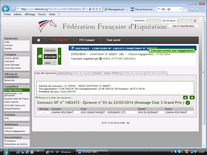 Du coup j'en ai profité pour lui dire qu'il me faudrait le carnet de Kiwi la semaine prochaine pour le concours, et que je lui donnerai les sous pour le maréchal lundi. Bon du coup il sera sans doute pas là lundi mais l'élève monitrice sera là donc c'est bon! Puis sinon j'ai demandé où ils partaient en concours, et là il m'a dit on part à *tel endroit* on y va avec le camion 6 places, deux vans et un petit camion deux places.