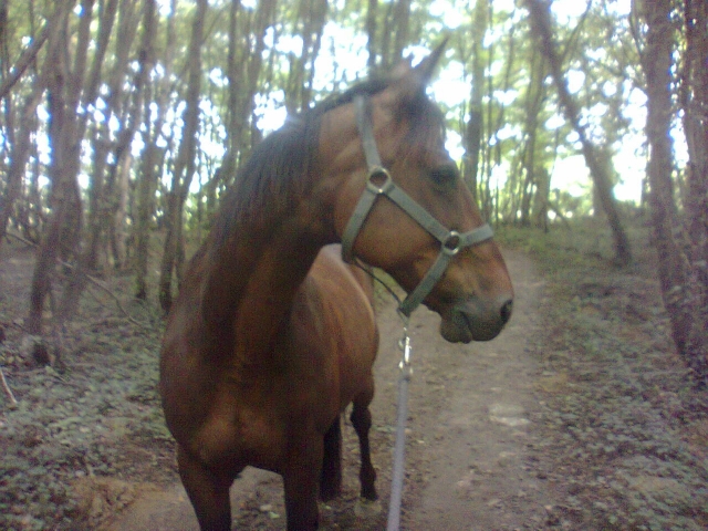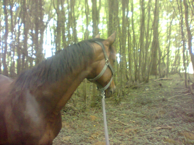 Donc au programme, immenses patatoïdes au pas, puis au galop. J'étais dans un bout de carrière de 20x40m. J'avais mis une barre au sol au milieu d'un grand "côté".