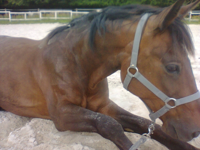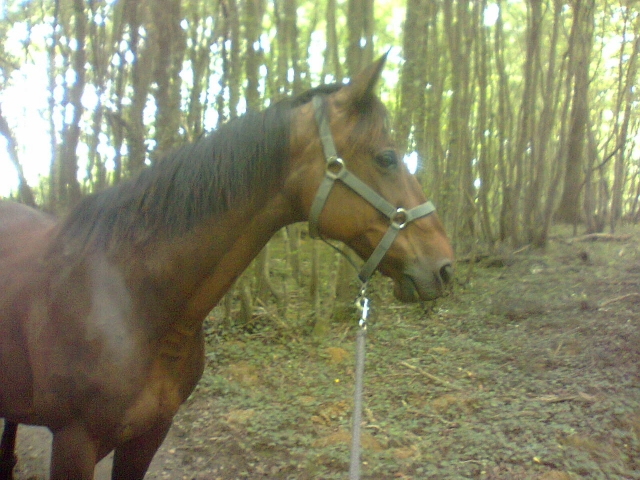 Aujourd'hui j'y suis allée rapidos (je faisais un essayage chez la couturière avant), je l'ai longé. J'ai mis le surfaix pour les rênes fixes, et j'ai mis la longe en colbert, une première avec Kiwi (on en a parlé sur le post des cavaliers de dressage, bref)