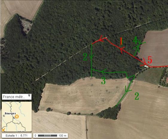 Voici un petit schéma : en rouge les portions sur la route, en vert les portions sur les chemins, avec les numéro pour indiquer dans quel ordre j'ai tout fait