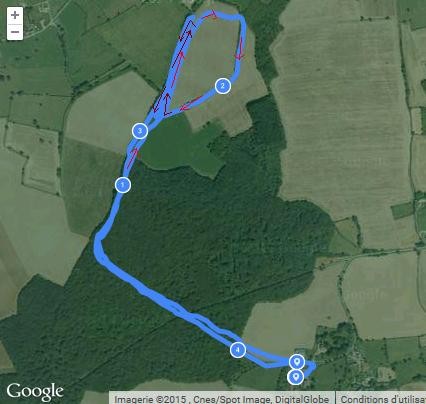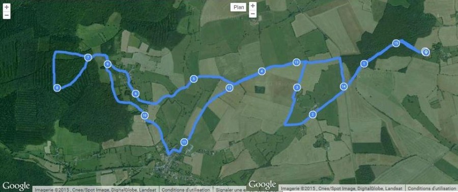 J'ai quand même entamé la boucle que je voulais faire, mais au lieu d'aller tout au bout du chemin ou presque, j'ai tourné avant pour raccourcir la boucle [n°7 n°8]. Pour rentrer, j'ai pris un chemin parallèle à celui de l'aller [entre n°9 - n°10 - n°11] ça descend pas mal et c'est boueux, donc on reste au pas. J'ai pris mon long chemin de galop dès le début [n°11], dans ce sens-là ça monte, j'ai mis seulement 3'16" pour faire le km [n°11 à n°12]!!!