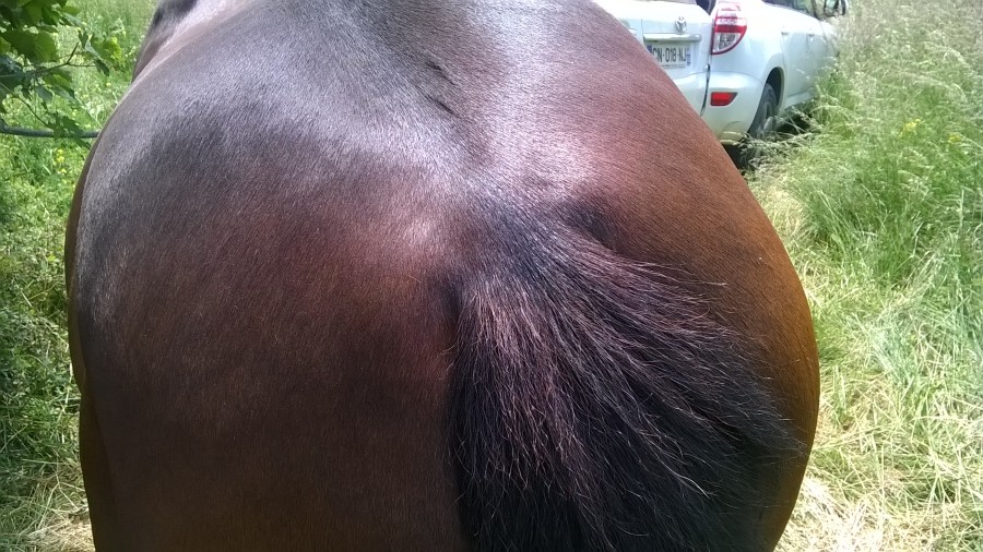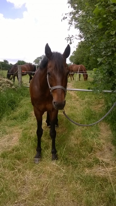 Puis il se tortille dans tous les sens avant le départ au galop, donc faut pas que j'anticipe trop mon départ, mais si je le prépare pas assez il accélère le trot (si on est déjà au trot) ou il trottine (si on part du pas).