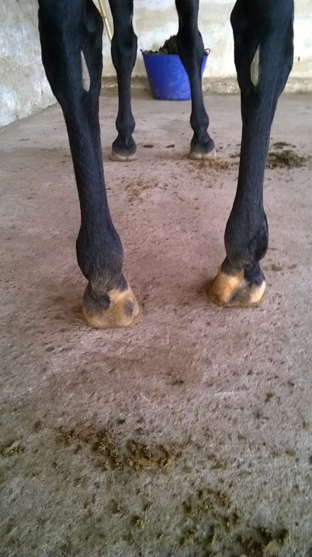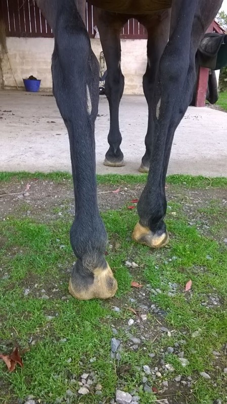Boulet droit RAS, et à gauche le tendon est encore gros (mais on voit pas grand chose en photo je trouve)