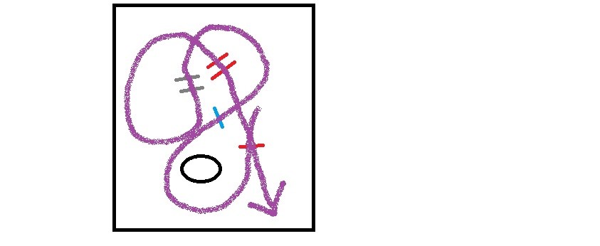 On a commencé par le vertical rouge en descendant, à main droite. (le rond noir c'est le matériel d'obstacles qui est en tas)