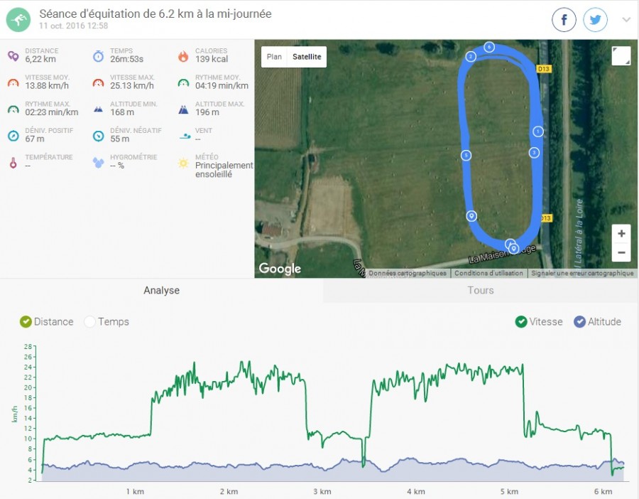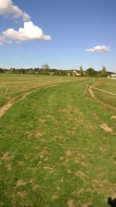 Et ce midi je suis allée sur la piste de galop avec Kiwi. 2 tours au trot, 3 tours au galop, pareil à l'autre main. Puis 1 tour et demi au trot pour récupérer et on est rentré au pas.