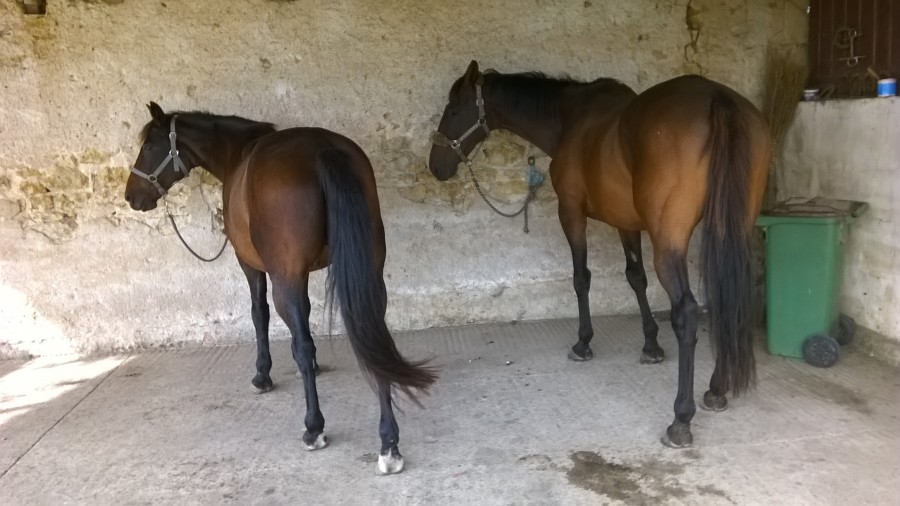 Puis je l'ai travaillé sur des petits cercles au pas et au trot en flexion latérale en lui faisant croiser les postérieur interne devant l'externe, et je lui faisais faire les transitions à ce moment-là. C'était pas mal du tout. Voilà on a bossé 25 minutes en tout.