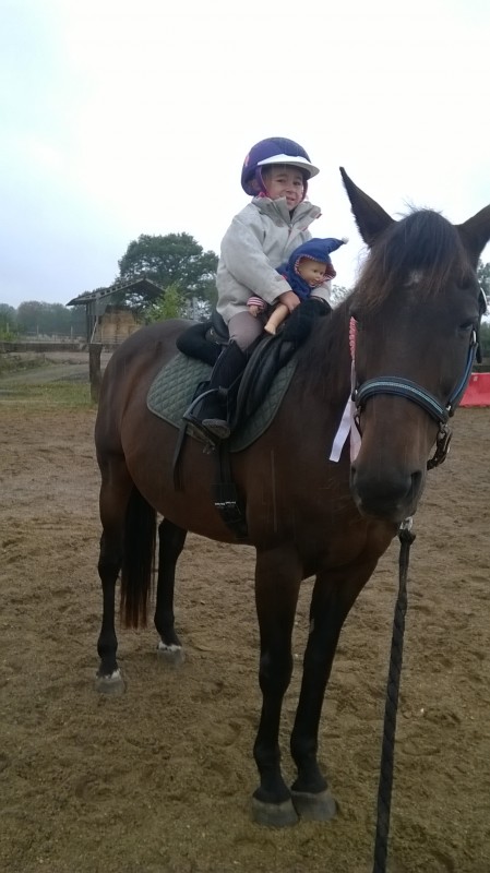 Ensuite on a fait pareil au trot. Puis quand ça a été Michèle a monté un petit vertical. Là c'était moins simple de sentir quand le cheval allait sauter! Mais à part un ou deux bug de ma part ça a été, bizarrement!