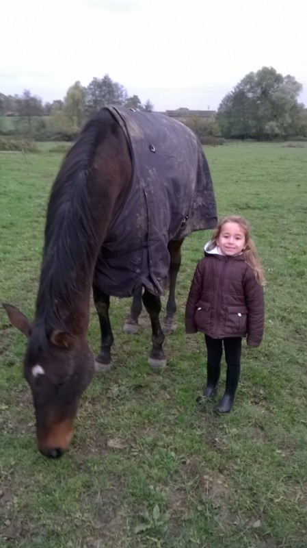 Osi, tellement soulagée en le voyant dans son pré (avant de prendre la photo avec ma fille) que j'en ai pleuré!