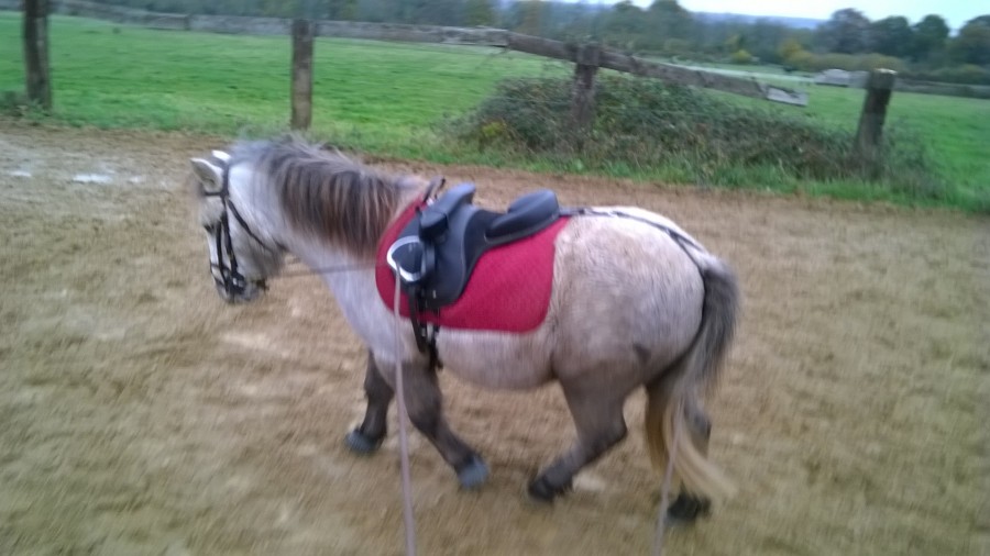 Ensuite on a fait pareil au galop, là comme si il s'appuie pour se soustraire à l'effort, comme je ne le porte pas, il se désunie ou repasse au trot... Bref ce fut laborieux mais il se prenait de plus en plus en charge.