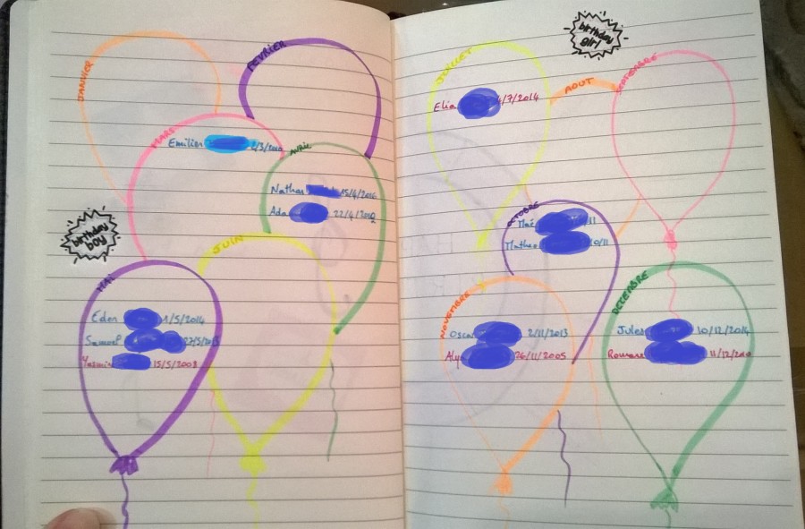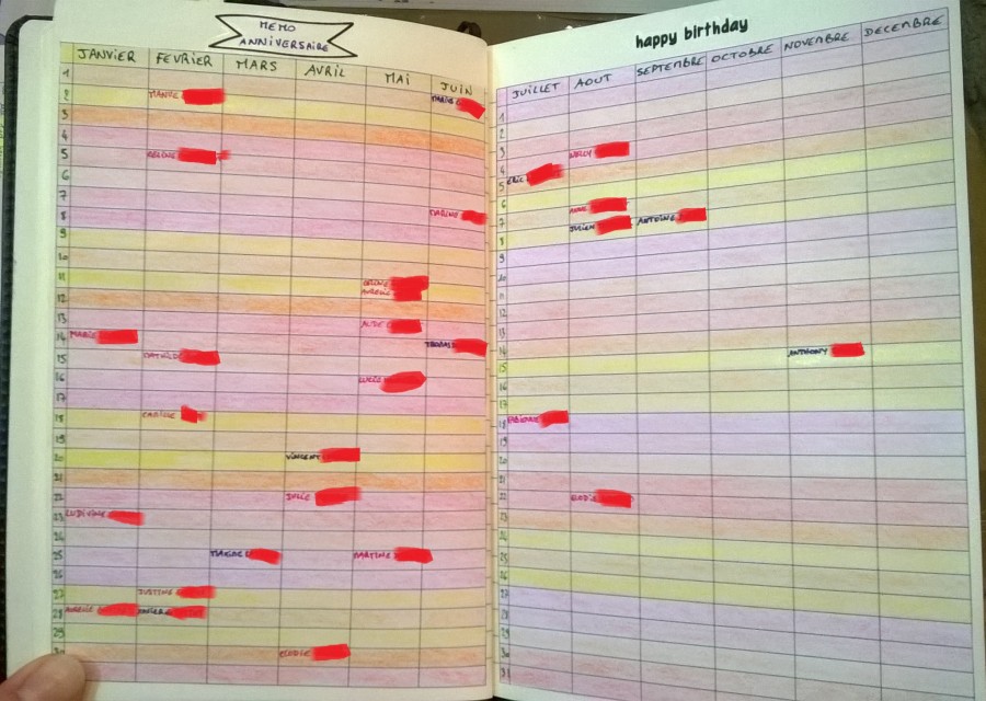 En revanche, je m'en sers pour noter les anniversaires (enfants, famille, amis), des recettes de cuisine sympas (genre celles qui passent en vidéo sur facebook), des citations que j'aime bien...