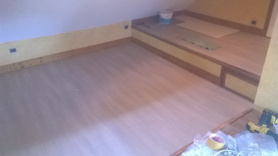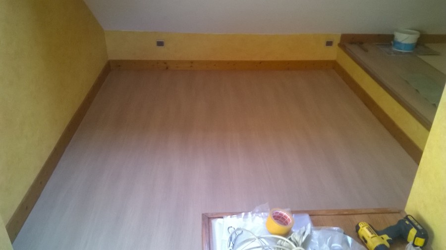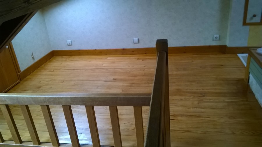 La mezzanine c'est tout petit, ça fait 5 ou 6m². Et y'a que la partie à droite dans le prolongement de la rambarde où je tiens debout