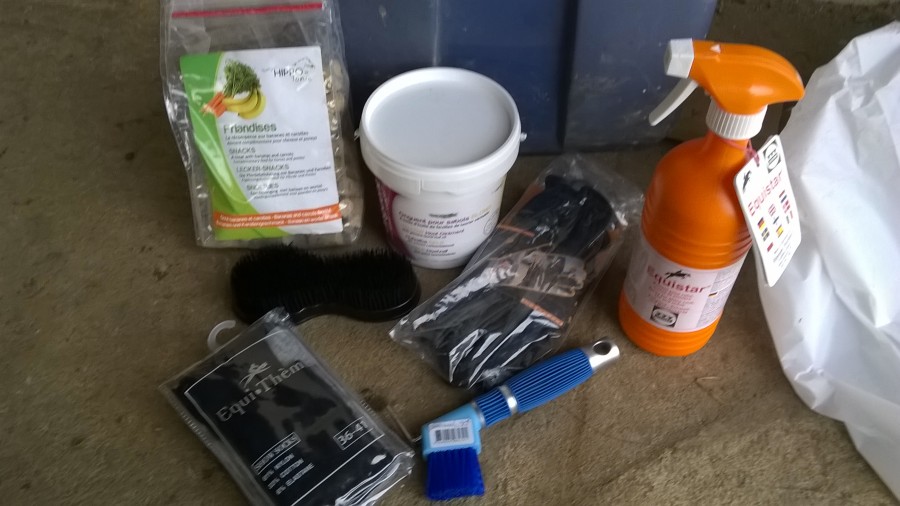 (je ne sais plus trop). J'ai du mal entre le vertical et l'oxer, ça tourne franchement (et en plus ça monte) mais Kiwi se dépatouille bien. Y'a un coup où je tourne trop large pour aller sur les plots, du coup je panique un peu et j'abandonne Kiwi à l'abord, on fait un saut pourriiiiiii mais il est trop mignon
