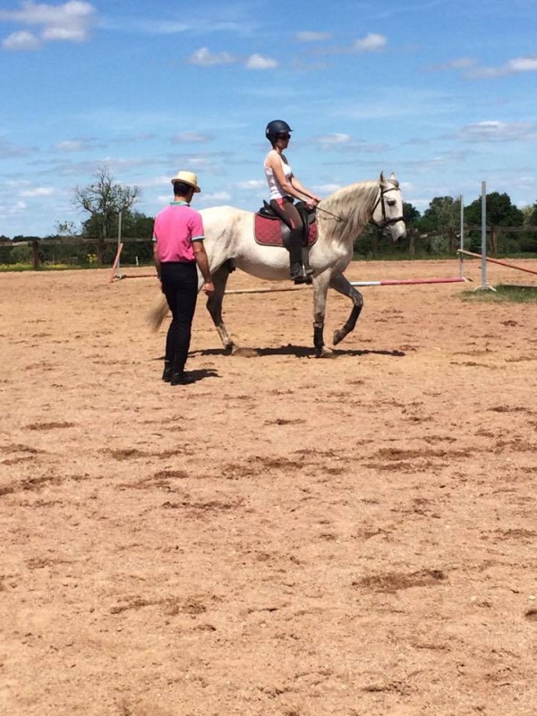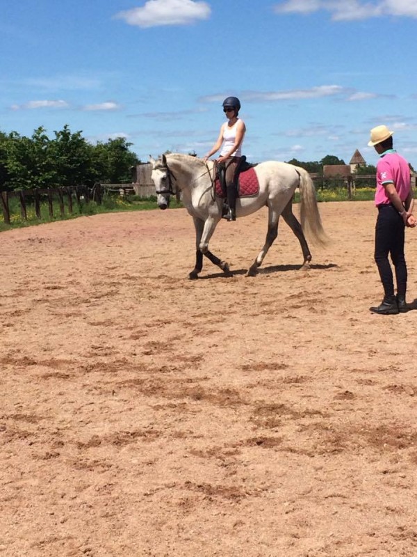 En gros, j'avais l'impression de ne plus savoir monter à cheval! D'être tout le temps crispée (bon, au pas encore, ça allait) et dissymétrique. Mais c'était super intéressant, Orfeu est un cheval super fin à monter.