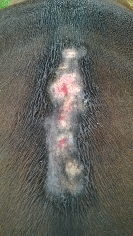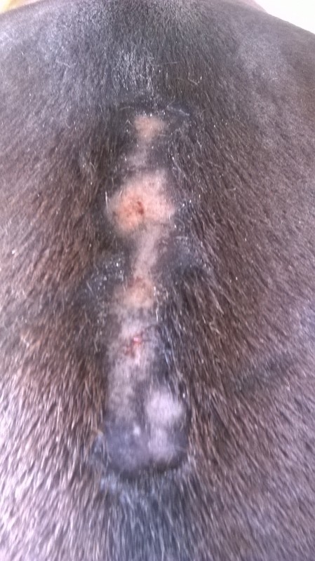Ce midi je suis allée au cheval, j'ai remonté mes filets et le licol à Kiwi. Puis j'ai papotté super longtemps avec la coach. Ensuite j'ai remonté Osi du pré pour lui faire un petit pansage et soigner les bobos.