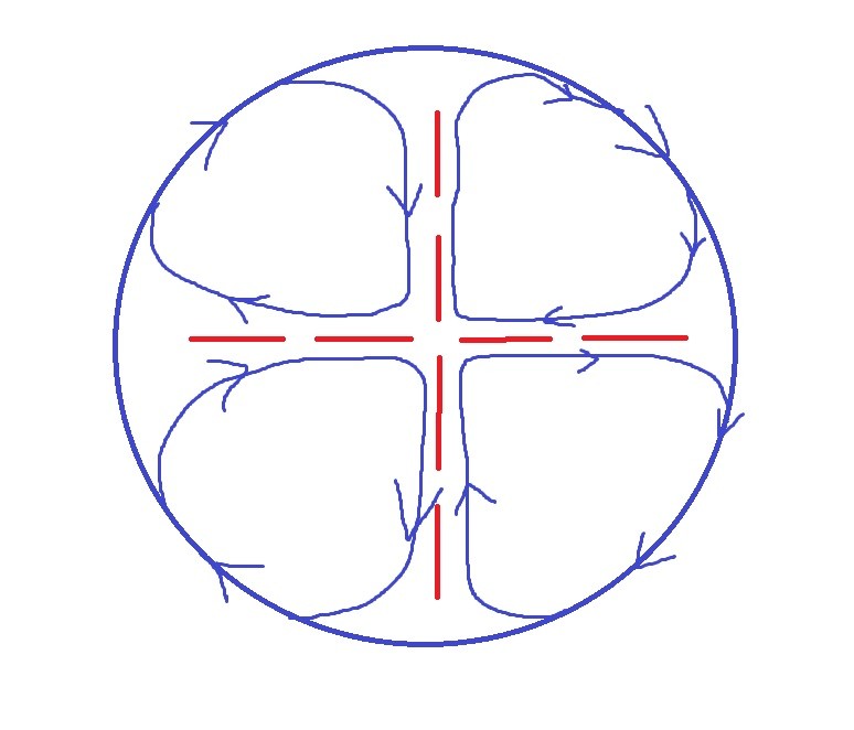 Michèle avait installé au sol 8 barres au sol qui formait un grand +. Chaque branche du + étant composé de deux barres. Au pas en équilibre on fait un cercle autour de ce +, et on rentre dans chaque case jusqu'à l'angle central, on rentre bien dans le coin. Et on guide le cheval avec notre regard et notre corps qui s'oriente, on garde les mains "posées" à mi-encolure, près de la bouche du cheval, interdiction de les ramener à soi, et d'éloigner latéralement les mains de l'encolure.