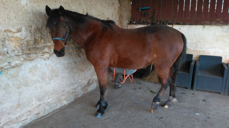 Il est super mignon ce cheval, curieux (genre à chaque fois que tu approches avec une brosse, la selle ou n'importe quoi d'autre, il veut regarder); pas forcément très rassuré, des fois il sursaute ou juste je le vois crispé +++ parce que je vais faire un mouvement brusque parce que j'ai échappé un truc par exemple... Donc faut lui parler, le caresser...l'acheter avec du pain aussi