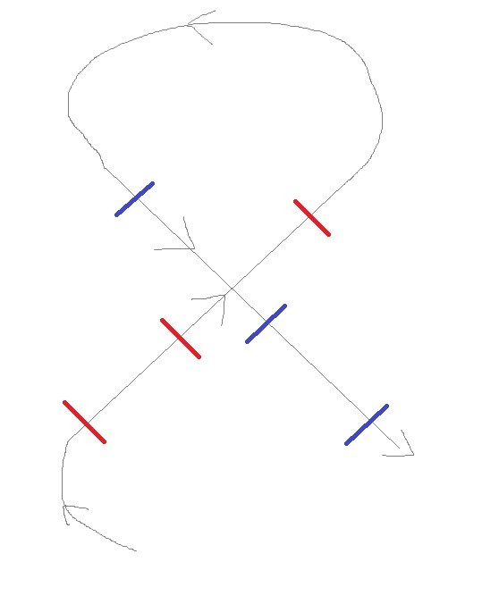 Je me mets en selle, on marche un peu. A peine le temps de trotter que la coach nous explique l'exercice suivant : sur cet enchainement de barres au sol au pas, dans chaque diagonale demander un arrêt entre les deux premières barres, repartir au pas, demander un autre arrêt entre les deux dernières barres, repartir au pas.