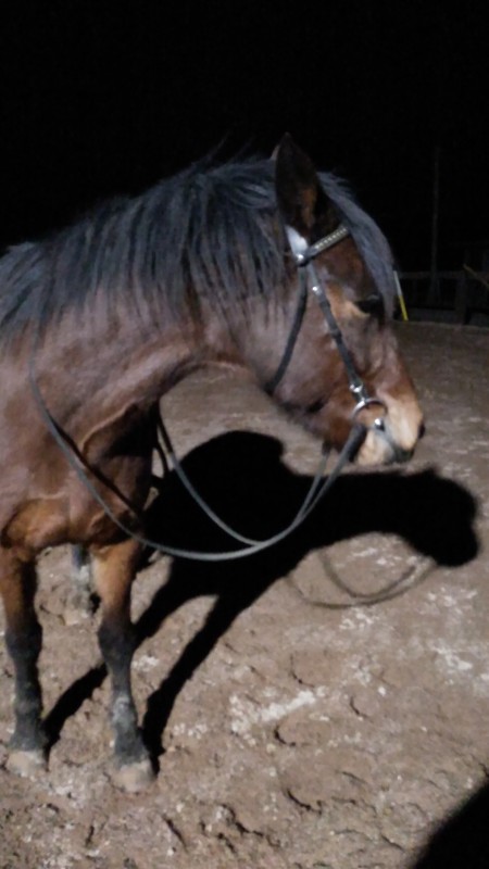 Kiwi sinon toujours pareil, un peu gonflé mais ne boite pas. A l'air de s'ennuyer un peu de ne plus bosser. La petite jument qui doit voir le véto est arrivée à l'écurie, on va pouvoir le faire venir.