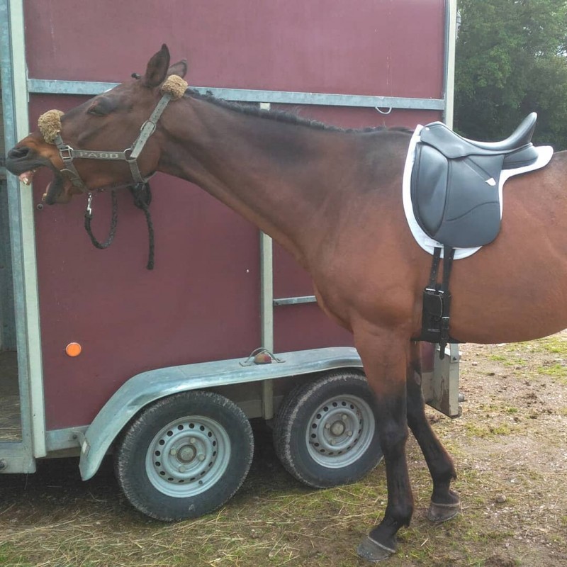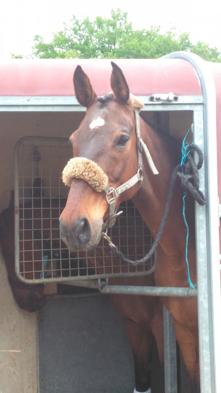 On a fait plusieurs tours de carrière comme ça (au moins une dizaine), soit grand cercle soit grande patate qui prend toute la carrière, jusqu'à ce qu'il soit un peu plus chaud et ait une allure normale. J'essayais en même temps de le plier un peu peu qu'il descende son nez car il était un peu trop nez au vent à mon goût. J'ai fait une pause, j'ai raccourci mes étrivières de deux trous et on est reparti. Il était dans une attitude plus basse et galopais bien, j'ai dû faire que deux tours de carrière.