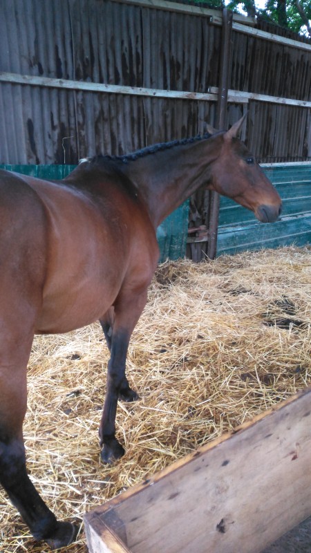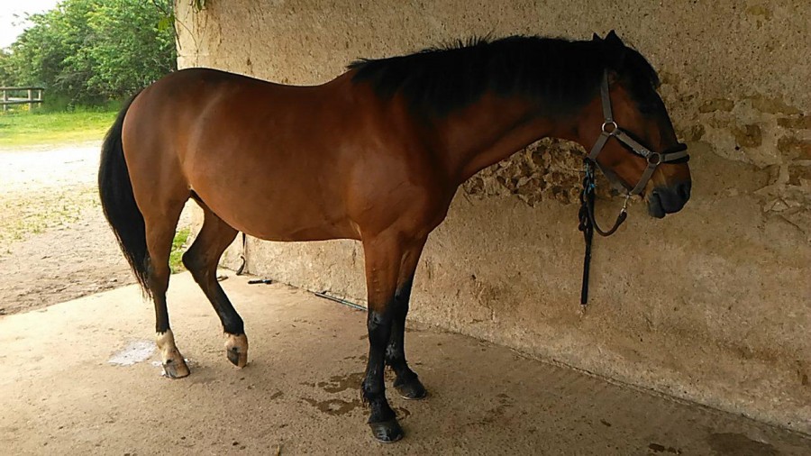 donc je l'ai repassé au pas comme j'ai pu et j'ai demandé direct le galop. Il a fait trois ou quatre foulées n'importe comment en levant le dos, je suis restée en suspension, rênes fluides, allez avance coco. Il était encore bien raide!