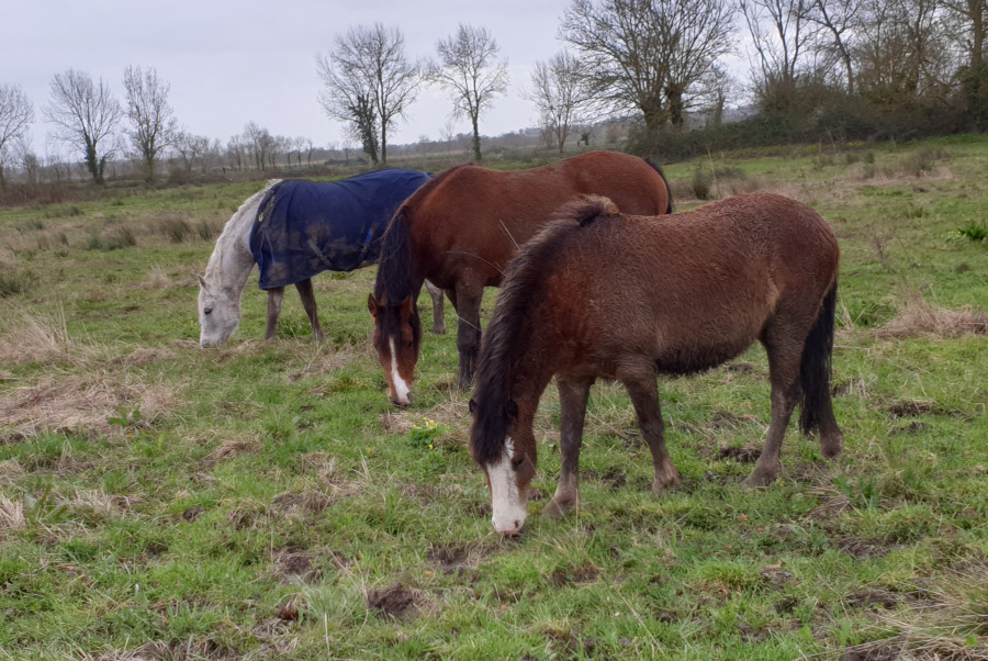 Heureusement qu'il y a des talus qui permettent aux chevaux de ne pas dormir dans l'eau. Apparemment cela ne les dérangent pas pour manger l'herbe qui s'y trouve. Elle est certainement succulente.