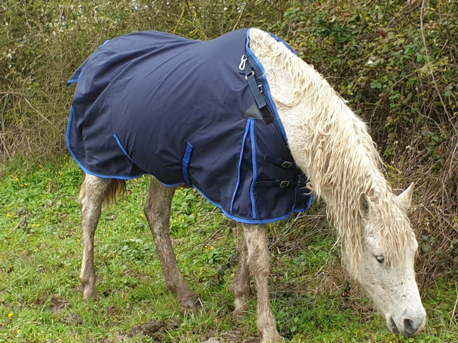 Aucunes crevasses ou gales de boue mais par contre Amica avait perdue trop de poils au niveau des reins dût à l'humidité. Du coup j'ai préféré couvrir pour cette série d'intempéries car les poils n'ont pas beaucoup repoussés.