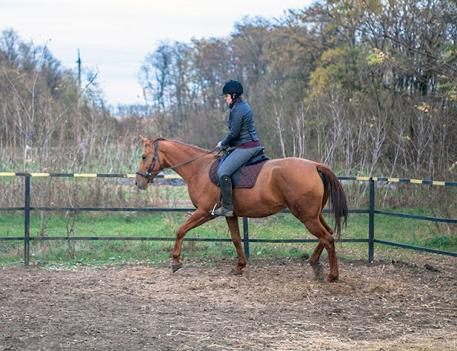 Apres le leçon en paddock j`ai essayé monter a Dea par trot au première fois :)