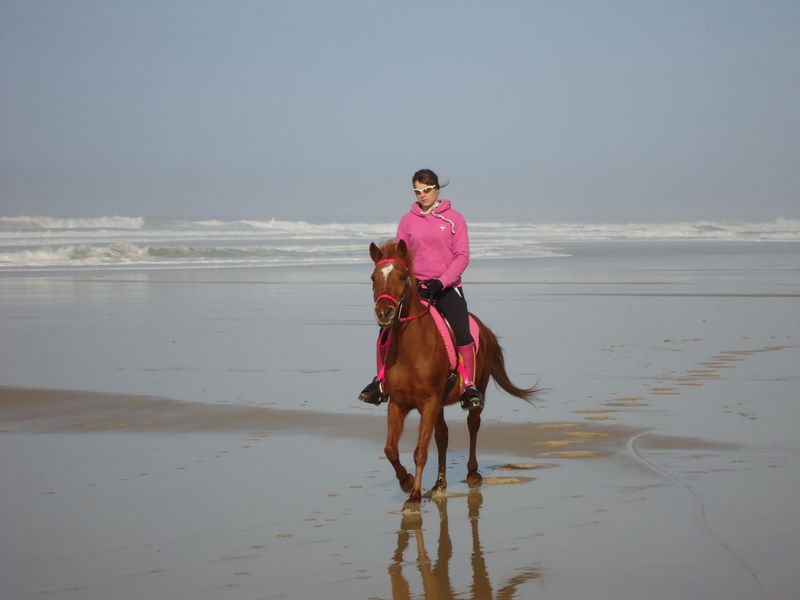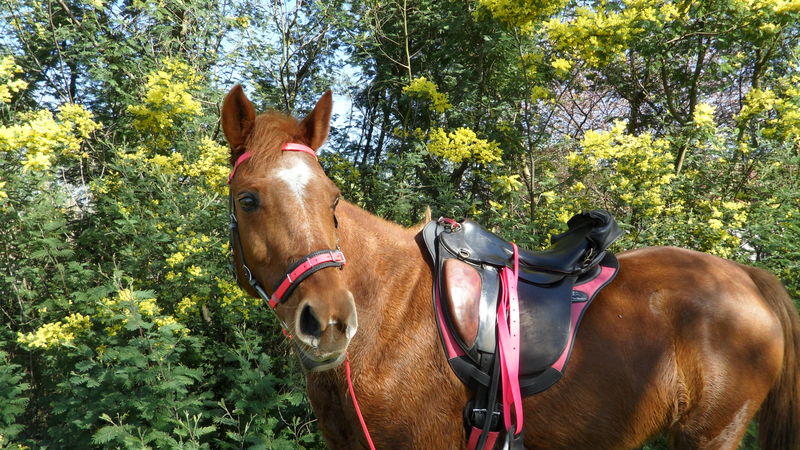Et oui, je mets du rose pétant..à un hongre ( qui commence à avoir le ventre d'une baleine )