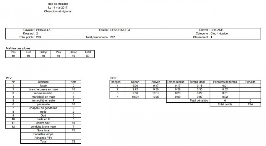 Pour les notes ca pourrait être mieux... l'immobilité j'ai bêtement perdu des points. Je me suis mis trop près du bord derrière. Du coup j'étais concentrée pour ne pas qu'elle avance et elle a reculé...