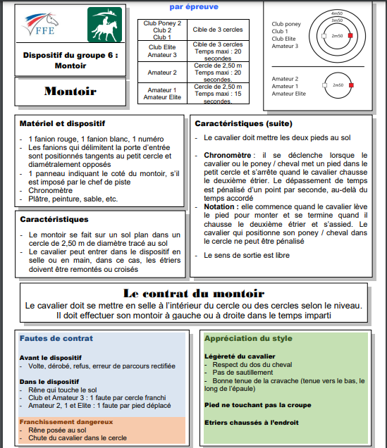 "ben non si j'arrive au montoir à pied (sans être rentrée dans le cercle du Montoir) , je fais demi -tour pour récupérer mon étrier et je perds beaucoup de temps de chrono " Pis c'est tout, il n'y à pas d'oublie d'obstacle ni de but de minimiser la technicité.