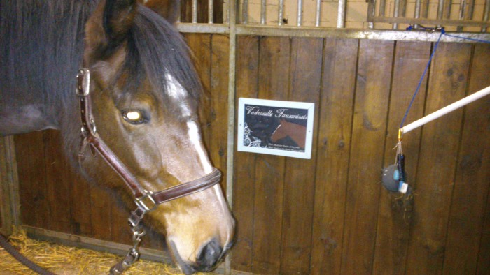 Le pire pour la plaque c est que le paysan m avait prévenu. Il m avait dit " t as pas peur de la mettre à la hauteur de sa bouche " moi j ai dit que ma jument etait un ange et qu elle ne demolirait pas la plaque... Ce à quoo il a repondu " enfin ta jument elle sort 2h par jour, le reste des 22h faut qu elle s occupe " ( grrrr j ai dit que