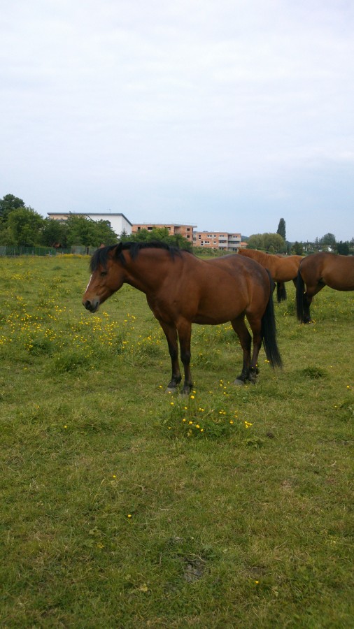 Ce soir retour aux ecuries pour un bon pansage, et bien j ai bien fait ma biquette s est arraché la chateigne au posterieur. Du coup douche et betadine qui evidemment est périmée depuis 1an.... grrr donc j ai taxé a une copine. Mais bon ca va.