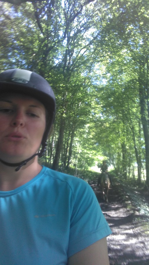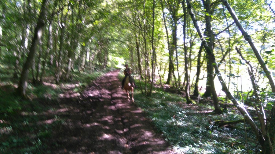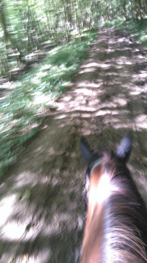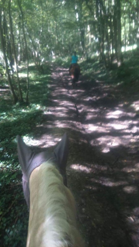 10h il commence déjà à faire chaud, mais on rejoint la forêt. On y trouve pas mal d'exo de trec, mania, tronc à enjamber, tronc à sauter, plan ascendant, plan descendant... des juments top, Damoiselle est aussi un 4x4 (même dans les arbres mdr