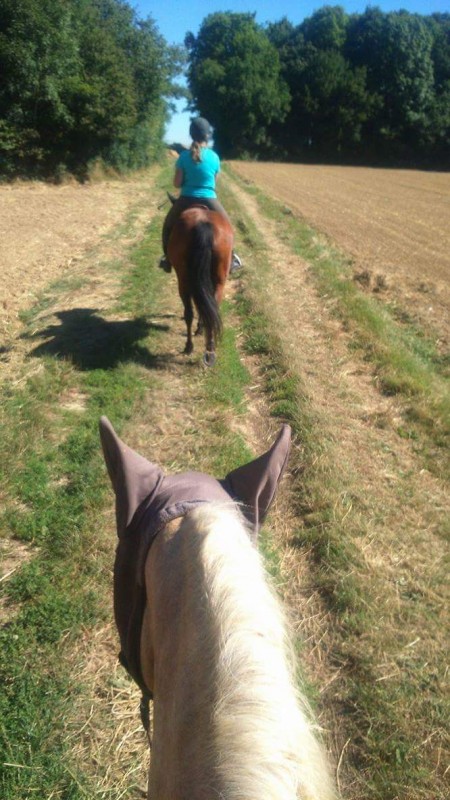 A cheval, c'est parti pour 2h de balade avec notre tomtom (Marine) et damoiselle.