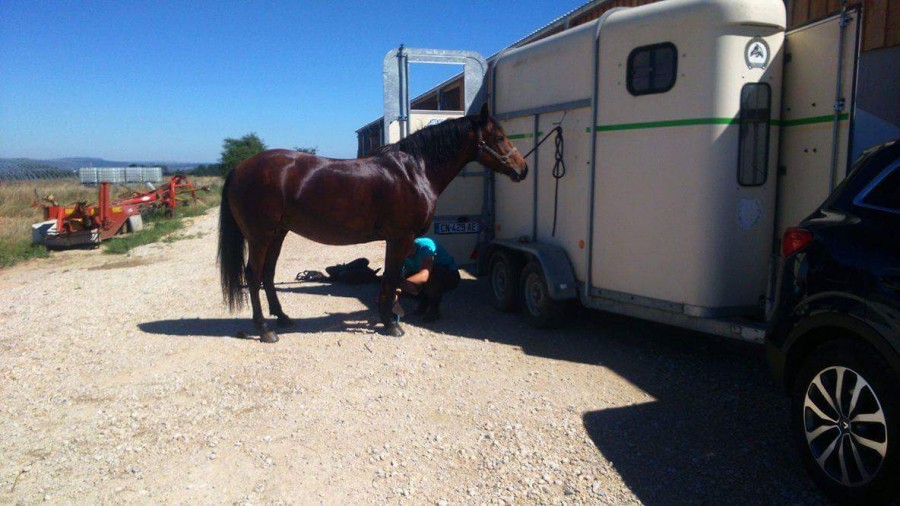 Petit dej, douche et direction le cheval pour atteler le van, puis le parc pour aller chercher vad. Vad était contente de me voir, mais un colocataire de parc relou a commencé à chasser tout le monde, j'ai râlé donc vad est partie et suivait les autres au trot, j'ai du patienter le temps que ça se calme. Bon j'ai réussi à la choper sans trop de retard.