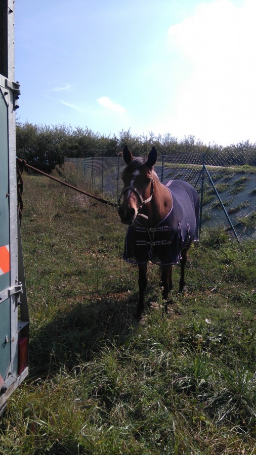 Après un bon pansage direction le van, j ai eu le droit à un bébé cabré pour aller au van, mais j ai rien dit juste un petit coup de mise en avant. Mise des guêtres et hop dans la boîte qui roule en 3 secondes.