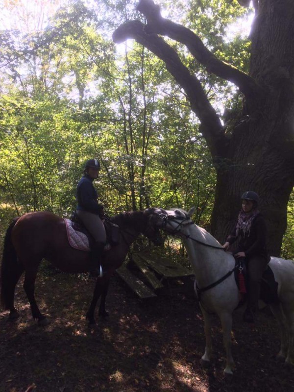 Des paysages à couper le souffle, avec la colline de sion en arrière plan. Puis de nouveau des chemins en herbe où là on a Galopé tranquille, mais vad voulait aller plus vite...pas d chance: on était dernier donc on ne gère pas la vitesse. A un moment elle m a sorti le trot que j adore, celui où j ai l impression de voler. On a également vu le chêne centenaire.