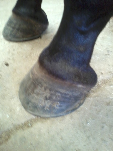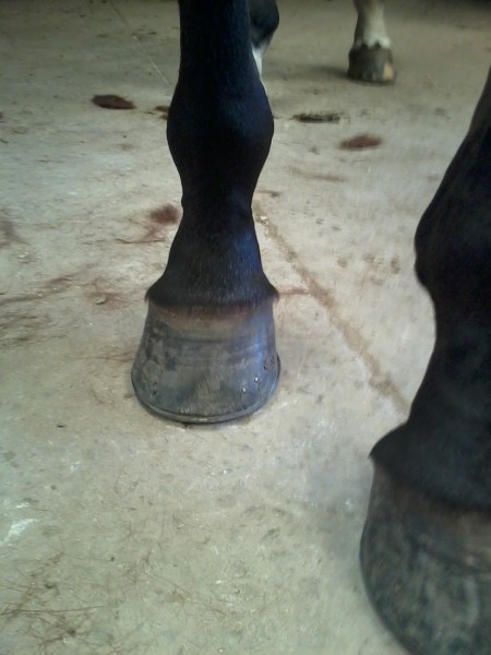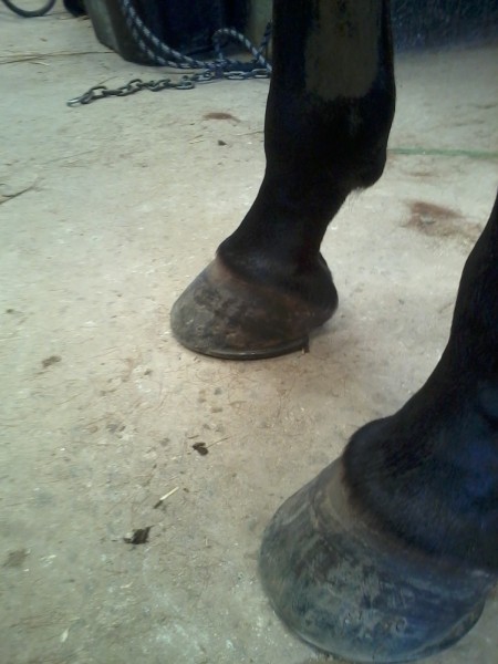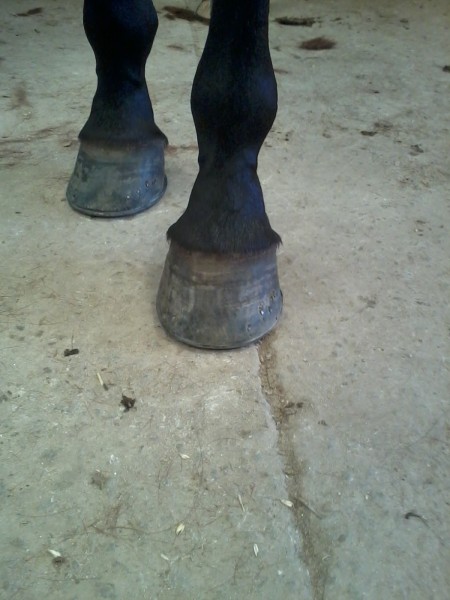 Des fers orthopédique ont été posé après l'opération avec des talonnettes de 4cm, 45 jours après le maréchal est revenu et baissé les talonnettes de l'antérieur gauche a 2cm, impossible d'intervenir sur le droit elle n'arrive pas a s'appuyer sur l'antérieur gauche.