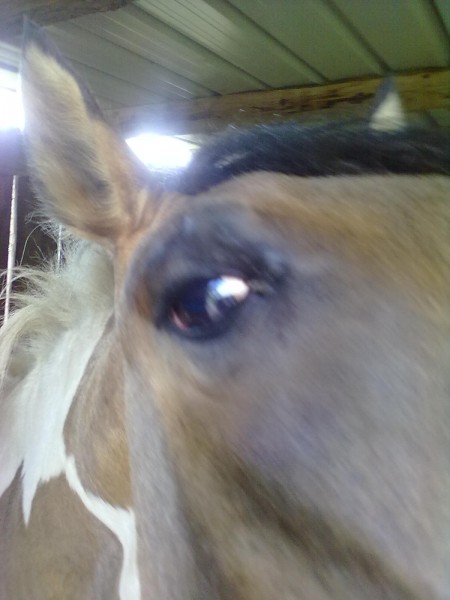 Mon poulain de 4 ans est né avec un problème à l'oeil gauche (mauvaise formation de la cataracte au moment de la naissance) il y voit mais moins bien qu'un oeil sain.