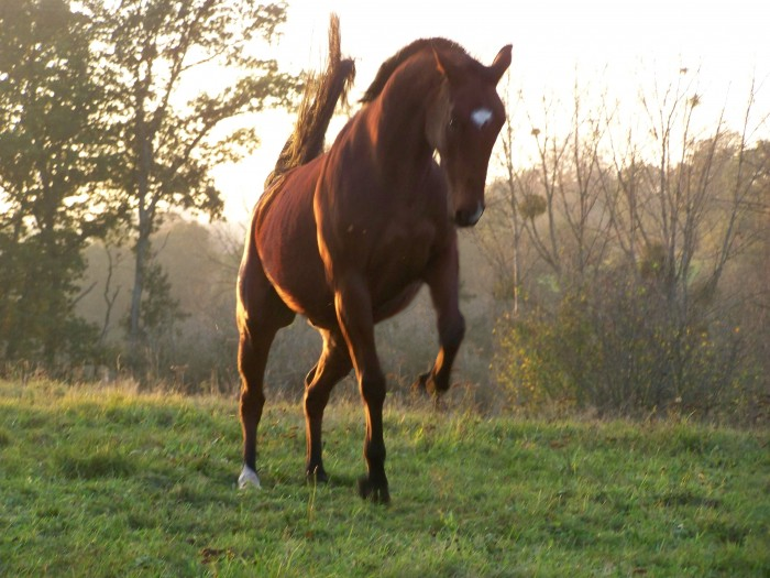On met ça sur le faite qu'il vient certainement de se prendre un coup de pied de son copain (hongre comme lui, mais la jument est actuellement en chaleur ...)