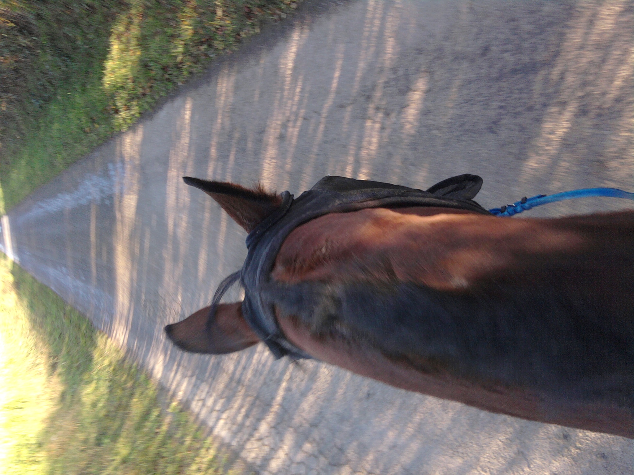 Il a été génial ! du ptit trot du ptit galop ... que du bonheur ce loulou d'amour ! un sursaut quand un oiseau s'est envolé c'est tout ! Nous avons fait un ptit tour d'une heure avec chemins et route pour entretenir ses petons !