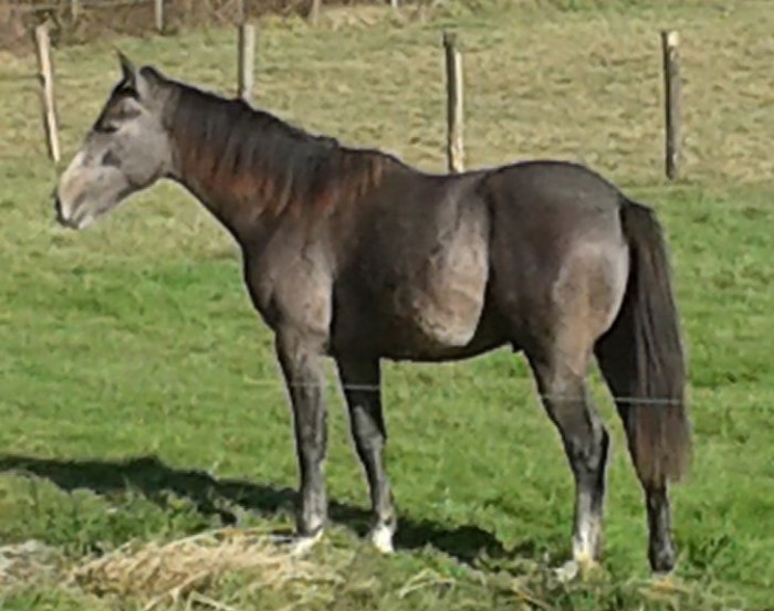 - ALFA SF par Poor Boy x Enchanteur AA, 15 ans, 1m63, dite JUNIOR puisqu'elle a le même nom que sa mère. Testée saine à la PSSM.