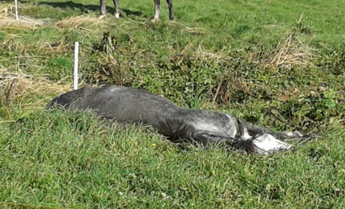 la ponette au pré est tte mouillee sur les cotes , a vu de nez elle se couche en vache et ca prend l humidite