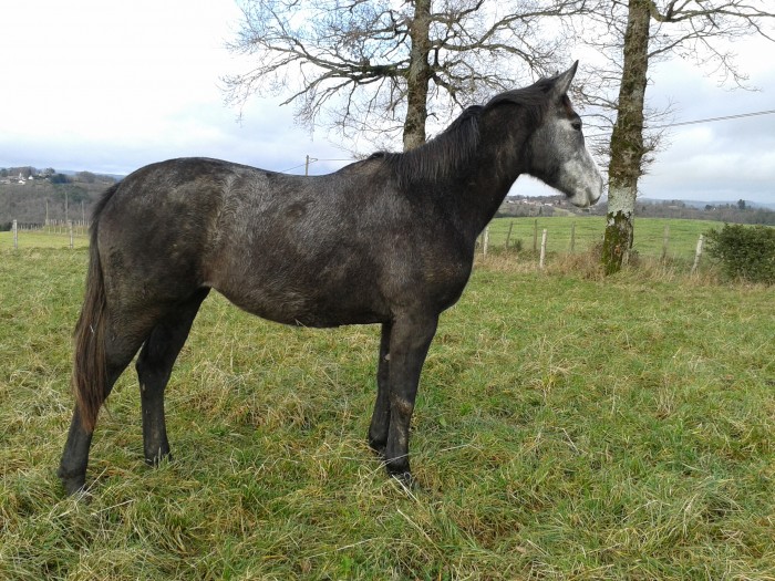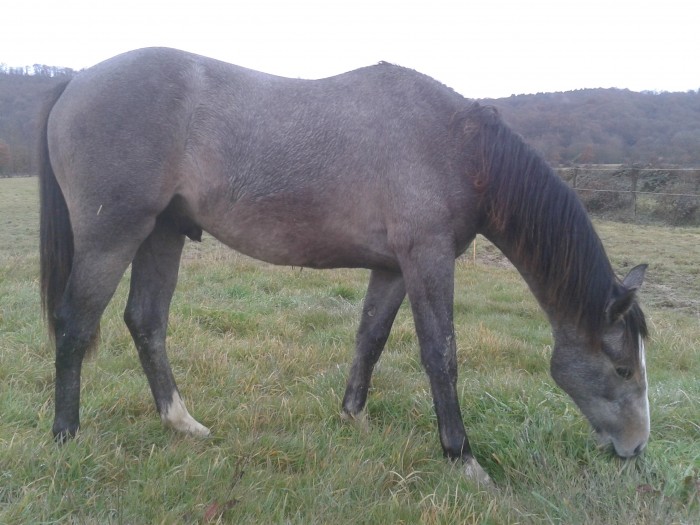 - ALFA SF par Poor Boy x Enchanteur AA, 15 ans, 1m63, dite JUNIOR puisqu'elle a le même nom que sa mère. Testée saine à la PSSM.