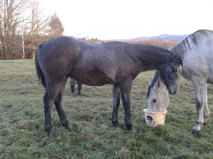 Pour la bosse d'Alloa, elle est douloureuse au touché oui, mais quand il fait le con il a pas l'air gêné. Il est prévu d'essayer de le remonter cet été normalement, mais je verrai comment je le sens. J'essaierai déjà de le longer avec la selle pour voir s'il n'est pas raide les jours suivants.