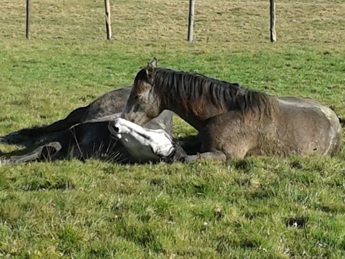 Ici il a fait super beau aujourd'hui, les chevaux ont profité su soleil!! Ça fait du bien mais ils annoncent une semaine pourrie cette semaine :/