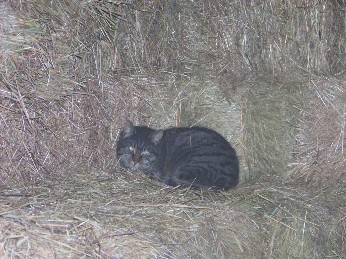 Par ce temps, qu'il est bon de dormir au chaud dans le foin quand on est un gros minou!