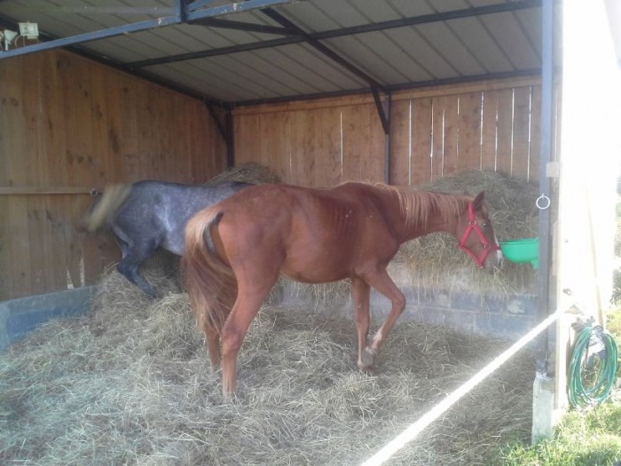 Les chevaux vivent au grand air la majeure partie de l'année mais connaissent aussi le box avec sorties quotidiennes lors des rigueurs de l'hiver. Ce qui a l'avantage de faciliter les manipulations: ainsi mettre le licol, donner les pieds, quitter les copains ponctuellement deviennent la routine!
