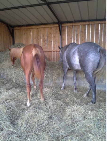 Finalement, je n'ai pu trouver que du yearling sur Bayonne et c'est Usa qui me les a ramenés hier. Donc pendant une semaine ils n'ont mangé que de l'orge avec un peu de maïs en plus pour D'Gin.