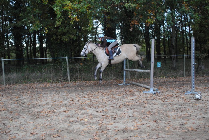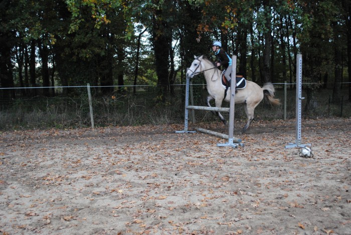 Nous on a profité de la présence de Maéva pour monter un peu les barres à Aragonn il a un bon coup de saut est franc là il est parti un peu tard mais n'a pas touché